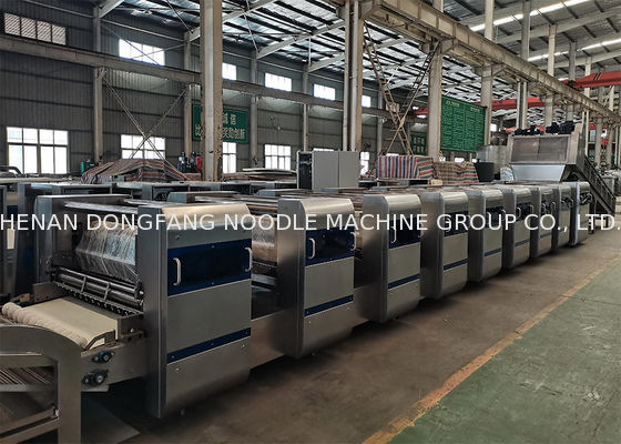 伸び、蒸気を発した長さを固定し、波形のヌードルを断ち切り、分けるのに機械が使用されている。後で、波形のヌードルは機械を揚げることの箱に滑る。